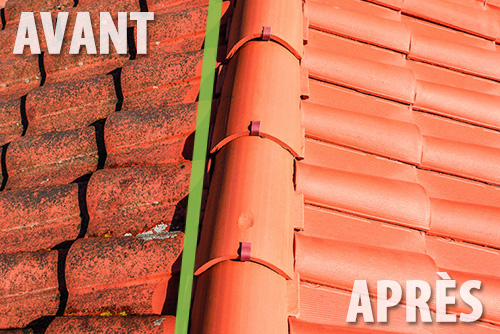 Afin d’éviter que les tuiles ne se gorgent d’eau et ne laissent proliférer les lichens et les algues, un traitement par hydrofugation permettra au support de retrouver ses propriétés protectrices mécaniques et esthétiques.